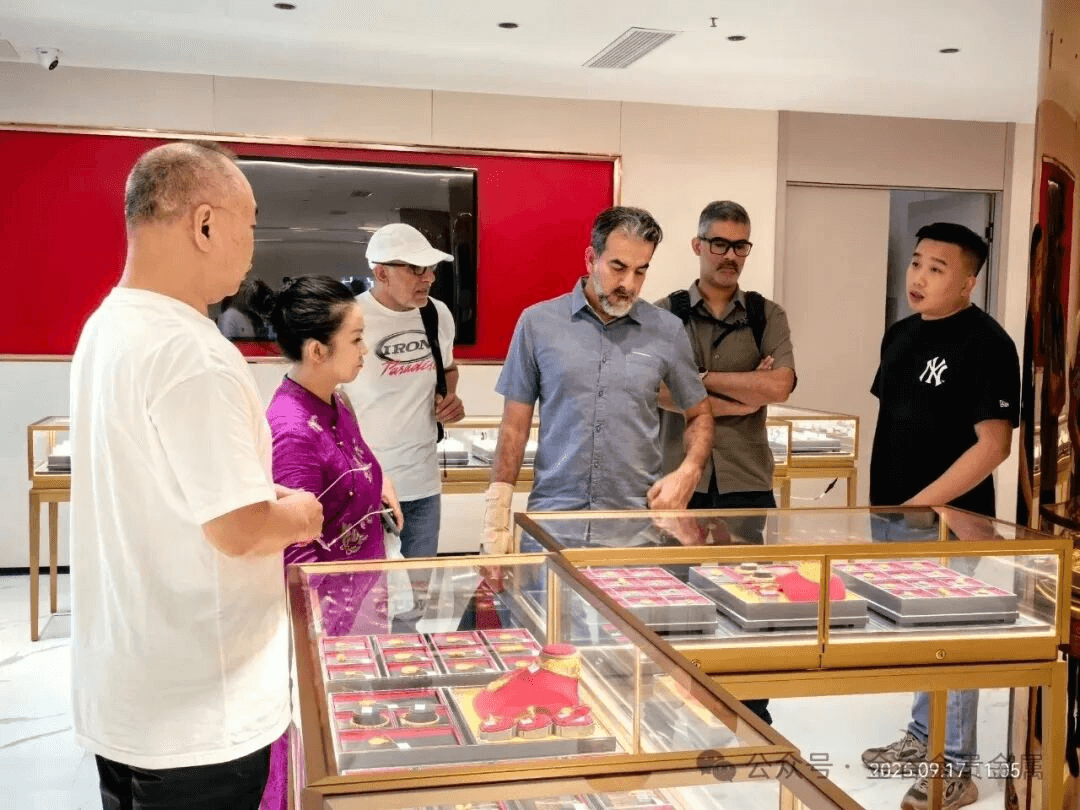 此次到访的三位客商分别为:阿曼的阿里·萨利赫·易卜拉欣·阿尔·阿吉米(Ali Saleh Ibrahim Al Ajmi)、卡塔尔的阿姆罗·阿里·S·阿尔胡迈迪(Amro Ali S Alhumaidi),以及阿联酋的马吉德·优素福·阿里·阿尔巴齐·阿尔努艾米(Majed Yousuf Ali Albazi Alnuaimi)。在公司领导的陪同下,客商参观了金谷金的黄金饰品及融合新材料开发的铜合金饰品展厅。精湛的工艺与创新的设计赢得了客商的高度赞赏,他们纷纷表示期待在铜合金领域展开合作,将优质的中国饰品引入本国市场。