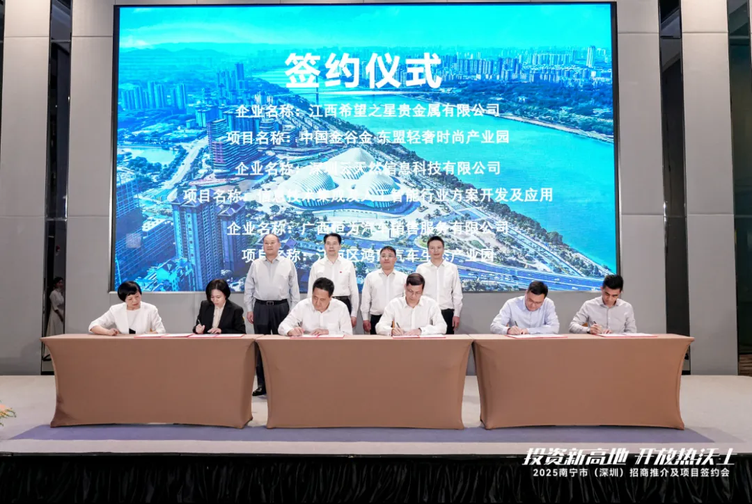 会上,一批重点合作项目集中签约,其中,由中国金谷金集团旗下子公司江西希望之星贵金属有限公司投资的“中国金谷金·东盟轻奢时尚产业园项目”正式落户南宁市兴宁区,成为本次签约会的亮点之一。