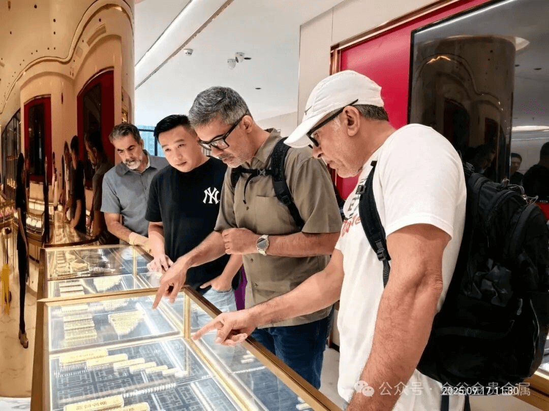 此次到访的三位客商分别为:阿曼的阿里·萨利赫·易卜拉欣·阿尔·阿吉米(Ali Saleh Ibrahim Al Ajmi)、卡塔尔的阿姆罗·阿里·S·阿尔胡迈迪(Amro Ali S Alhumaidi),以及阿联酋的马吉德·优素福·阿里·阿尔巴齐·阿尔努艾米(Majed Yousuf Ali Albazi Alnuaimi)。在公司领导的陪同下,客商参观了金谷金的黄金饰品及融合新材料开发的铜合金饰品展厅。精湛的工艺与创新的设计赢得了客商的高度赞赏,他们纷纷表示期待在铜合金领域展开合作,将优质的中国饰品引入本国市场。