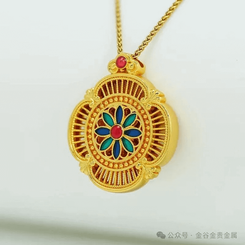 再说说设计 —— 咱可是把 “设计出圈” 焊在 DNA 里了!融合潮流和经典,不做千篇一律的款:比如最近刚上的美谷铜合金花轮挂坠,通体金质流光溢彩,花丝镂空工艺还嵌着彩珐琅花瓣,中心红饰点睛,配素链一戴,古典华贵感拉满,秒变东方美学氛围美人。