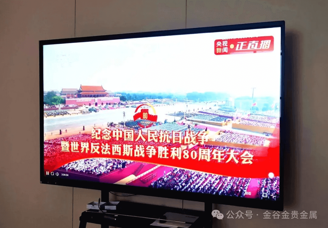 金秋九月,盛典如约。为深切缅怀革命先烈的丰功伟绩,弘扬伟大的爱国主义精神和抗战精神,激发全体员工的民族自豪感、历史责任感与时代使命感,金谷金集团总部3日上午组织全体员工集中收看“纪念中国人民抗日战争暨世界反法西斯战争胜利80周年阅兵仪式”现场直播,共同见证这一彰显国威、振奋人心的历史性盛典。